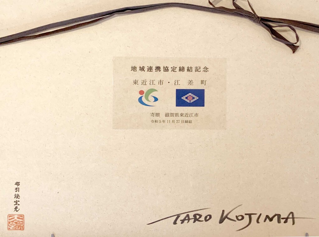 東近江市と北海道江差町との地域連携協定締結の記念品として陶額を制作させていただきました。江差町のシンボル鷗島(かもめじま)を描いています。江差町役場に飾られているとの事です(^^)